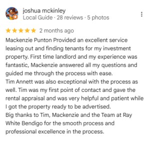 At Ray White Bendigo, we take pride in delivering a service that’s professional, approachable, and tailored to your needs—whether you’re buying, selling, investing, or renting. But don’t just take our word for it!